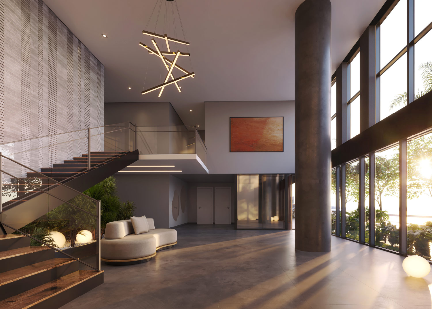Perspectiva artística do Lobby com pé-direito duplo