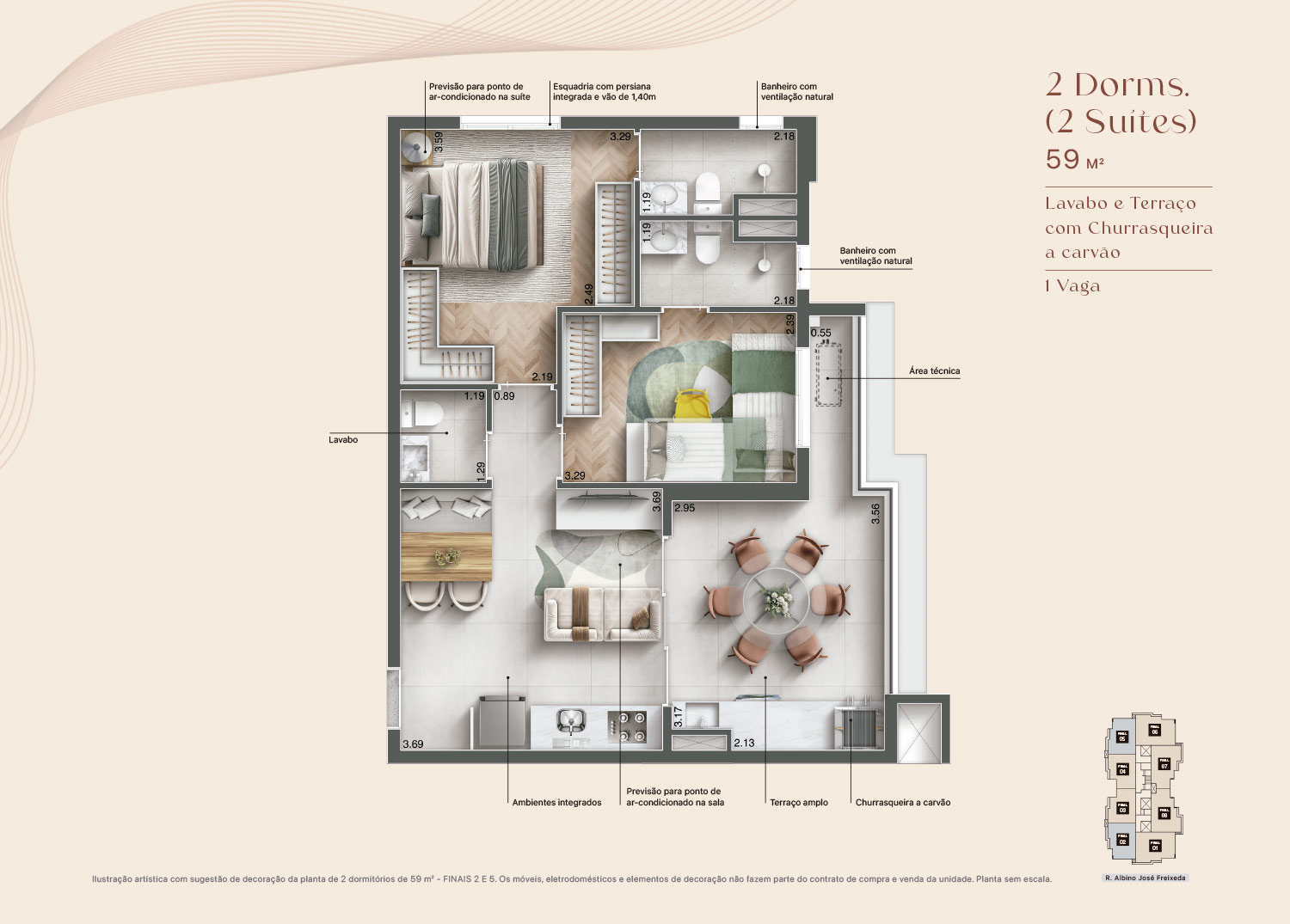 Perspectiva artística do Living Ampliado